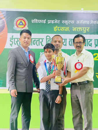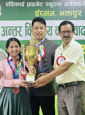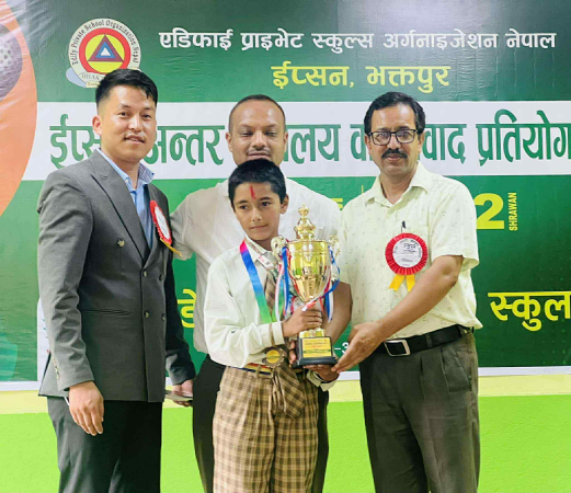 MMI- भक्तपुर, साउन २२ – एडिफाई प्राइभेट स्कुल्स अर्गनाइजेशन नेपाल (ईप्सन भक्तपुर) द्वारा आयोजित "वादविवाद प्रतियोगिता" सुर्यविनायक वडा नं. ३ बालकोटस्थित ईडेन गार्डेन इङ्लिश स्कुलको संयोजनमा सफलतापूर्वक सम्पन्न भएको छ। कार्यक्रमले विद्यार्थीहरूमा तार्किक क्षमता, सार्वजनिक बोल्ने सीप तथा आलोचनात्मक सोचको विकासमा योगदान पुर्याउने उद्देश्य राखेको थियो।