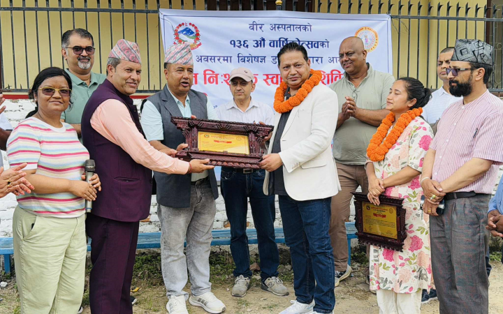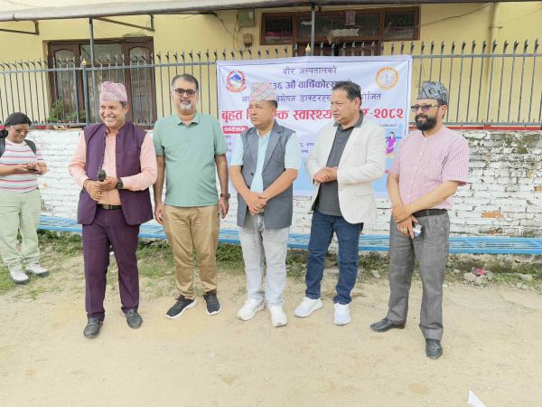 एमएमआई संवादाता (भक्तपुर)– साउन ९- वीर अस्पतालको १३६ औँ स्थापना दिवसको अवसरमा सुर्यविनायक नगरपालिका वडा नं ७ गुण्डूको समन्वयमा आयोजित निशुल्क बृहत स्वास्थ्य शिविर सफलतापूर्वक सम्पन्न भएको छ। स्वास्थ्य सेवा विस्तार र स्थानीय बासिन्दाको स्वास्थ्य पहुँच सुनिश्चित गर्ने उद्देश्यले सञ्चालन गरिएको उक्त शिविरमा विशेषज्ञ चिकित्सकहरूमार्फत विविध स्वास्थ्य परीक्षण, परामर्श तथा आवश्यक औषधि वितरण सेवा प्रदान गरिएको थियो। स्थानीयको उल्लेखनीय सहभागिता र उत्साहका साथ सम्पन्न शिविरले समुदायमा स्वास्थ्यप्रतिको सचेतना अभिवृद्धि गर्न महत्वपूर्ण योगदान पुर्याएको छ।
